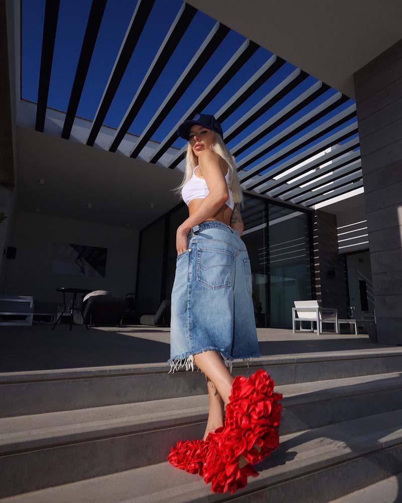 Su estilo irreverente combina piezas inesperadas —como un bolso en forma de acuario de peces, una falda usada como top, o incluso un albornoz llevado como abrigo— con una narrativa visual que se ha vuelto su sello personal. En lugar de seguir el ritmo efímero de la moda rápida, Juliana apuesta por convertir cada look en una conversación entre arte, ironía y estilo.