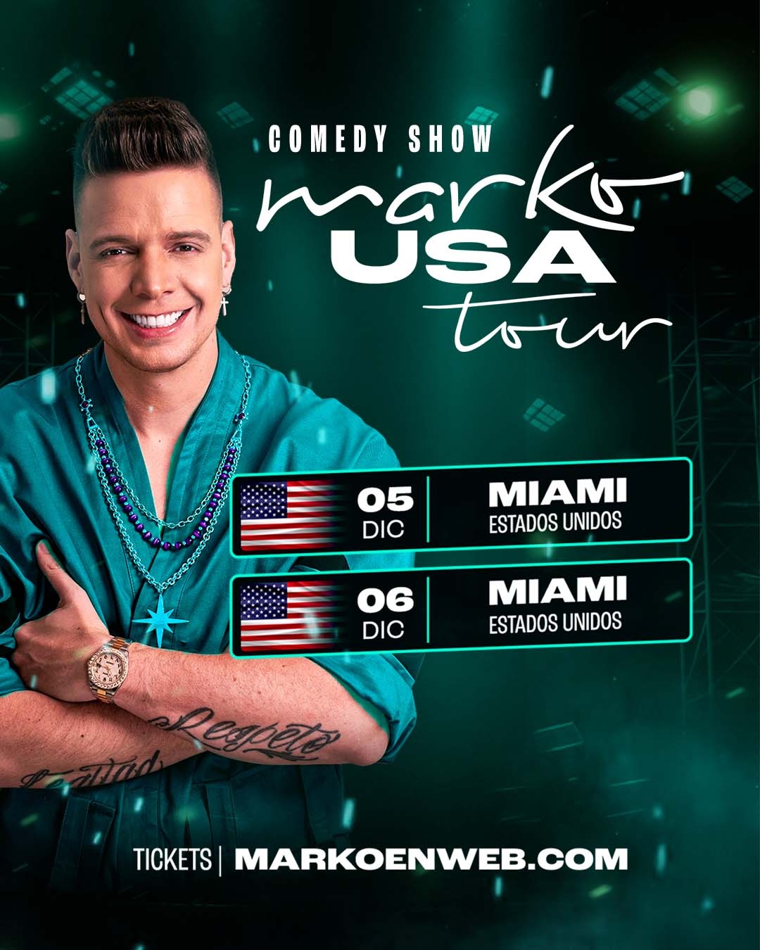 El punto culminante de la gira es la presentación doble en La Scala de Miami (https://markoenweb.com/shows/).